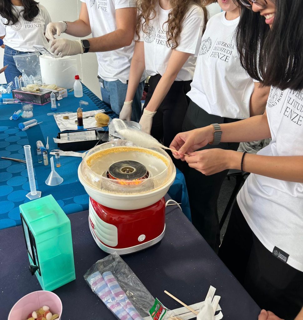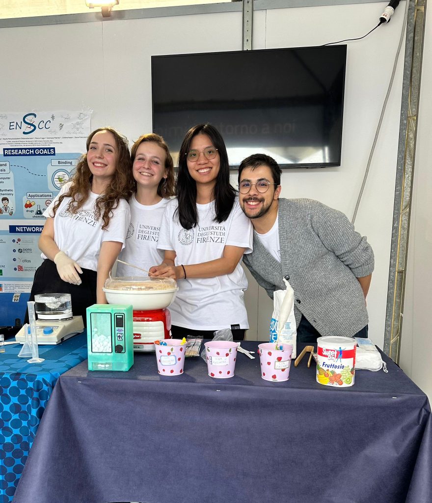 In collaboration with ENSCC students, they prepared an interactive stand showing that carbohydrates are part of almost everything around us — from clothing fibres and skincare products to food and everyday materials. Visitors could try simple experiments, learn about the GlycoNovi network through posters, and enjoy a bit of science fun with a cotton candy machine that was especially popular among children.